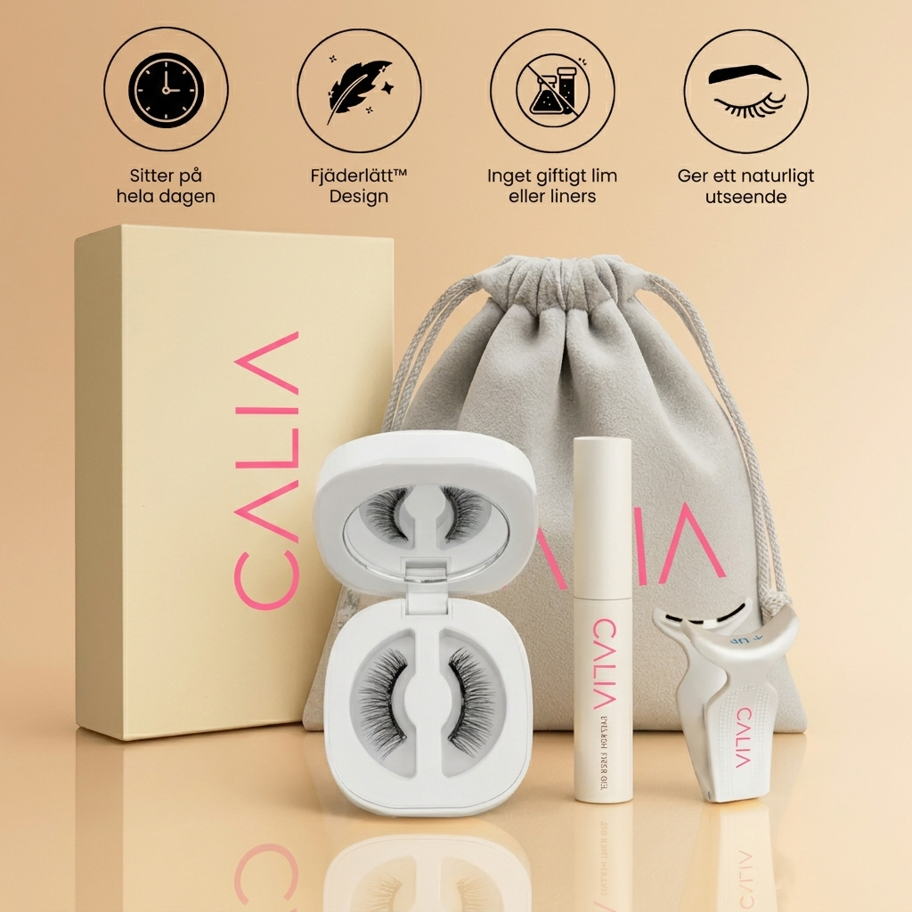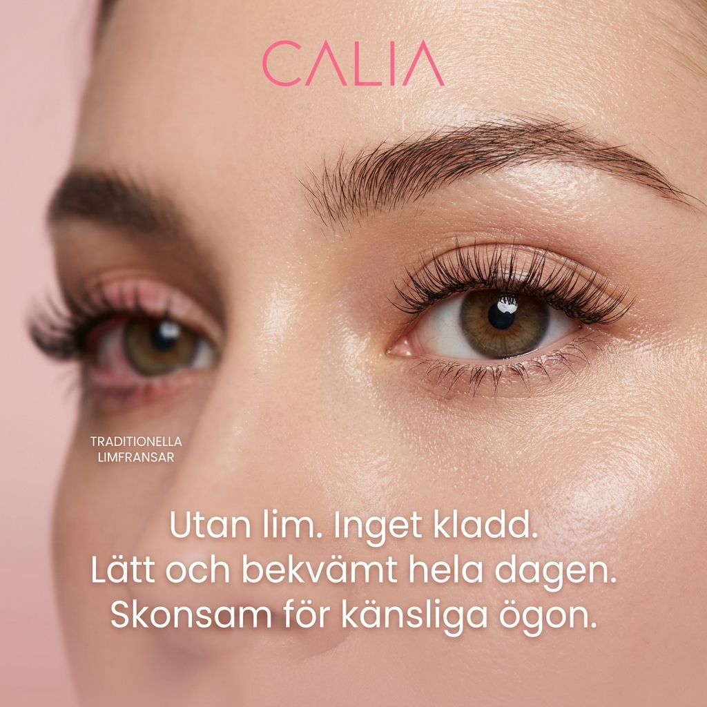 CALIA föddes ur en enkel idé: lyxiga lösfransar borde inte kräva lim, väntan eller en make-up-artist. Vi ville göra det möjligt att se ut och känna sig fantastisk på 3 sekunder, hemma i badrumsspegeln.